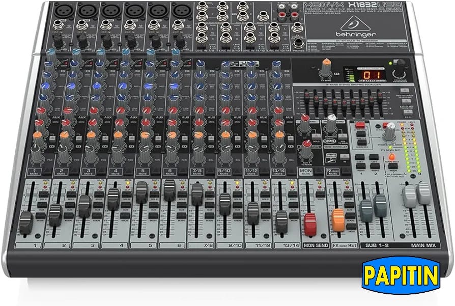 El mezclador USB Behringer Xenyx X1832USB facilita la mezcla de hasta 14 canales de audio a un precio económico. Obtienes seis preamplificadores de micrófono Xenyx en los primeros seis canales, más cuatro canales estéreo adicionales para fuentes de nivel de línea. El diseño de 2 buses te permite enrutar señales a una fuente alternativa, mientras que tres envíos auxiliares por canal mejoran aún más tus opciones de enrutamiento. El X1832USB también te ayuda a sonar lo mejor posible, con compresión de un solo botón y ecualizadores de 3 bandas con medios barribles. Un ecualizador gráfico de 9 bandas te permite marcar realmente el sonido que estás buscando, y se puede configurar tanto para la red principal como para los monitores. El sistema de detección de retroalimentación FBQ te ayuda a identificar las frecuencias ofensivas para que puedas domarlas, y el efecto envolvente estéreo XPQ 3D le da a tus mezclas un sonido enorme que llena la sala. Lo mejor de todo es que puedes grabar fácilmente la salida estéreo del X1832USB para